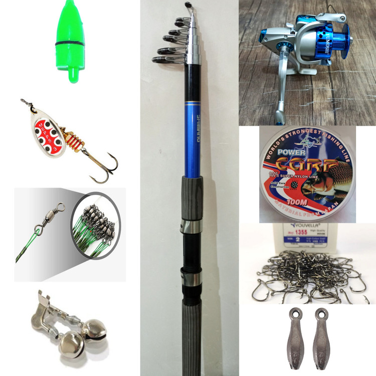 ست ماهیگیری چوب تلسکوپی کپوری آرنا(شیمانو) سایز 3.60 و چرخ یاموشی 7000 به همراه ست کامل وسایل شامل 100 متر نخ، یک بسته قلاب، سرب، زنگوله، لانسه قزلی، سیم بکسل، هرزگرد و فسفر مناسب صید انتظاری در سد، رودخانه و دریا؛ با ارسال رایگان به سراسر کشور