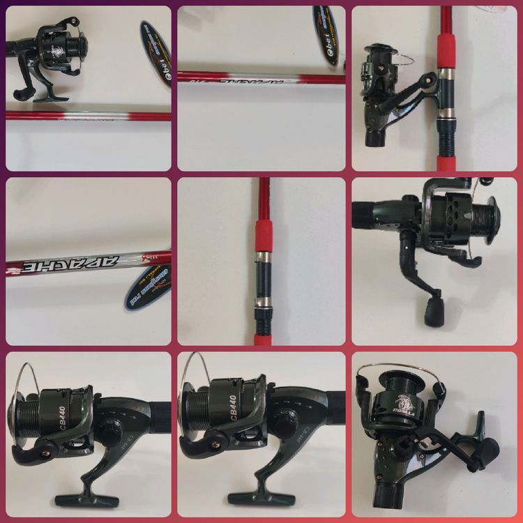 چوب ماهیگیری ۲/۱۰ آپاچی به همراه چرخ ۴/۴۰ کبری و لوازم جانبی ، شامل؛ قلاب ، نخ، فسفر ، شناور، هرزگرد و سرب