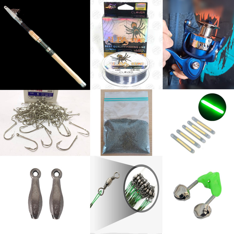 ست لوازم ماهیگیری چوب شیمانو کاتانا و چرخ سیل استار به همراه همه لوازم موردنیاز ماهیگیری شامل: 100 متر نخ، 20 عدد قلاب، سرب، فسفر، سیم بکسل، هرزگرد، فنرفیدر، زنگوله و پودر گاماروس(مناسب برای ساخت بویله/غذای ماهیان آکواریومی) + ارسال رایگان به سراسر کشور