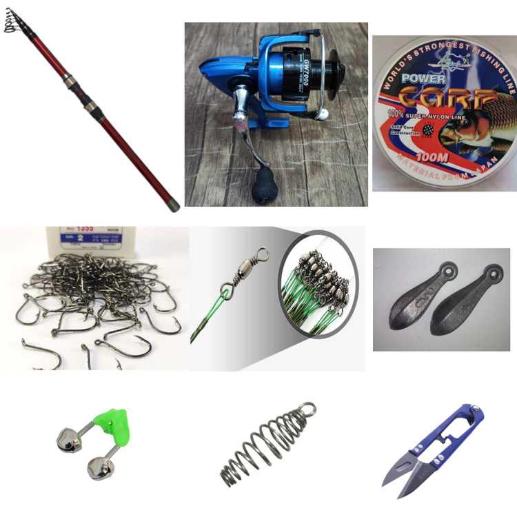 ست لوازم ماهیگیری چوب آلبااستار سایز 3.60 و چرخ GW 7000 با دستگیره تمام فلزی به همراه ست کامل لوازم ماهیگیری شامل نخ، قلاب، سرب، زنگوله، سیم بکسل، هرزگرد، فنرفیدر، شناور و قیچی ماهیگیری.