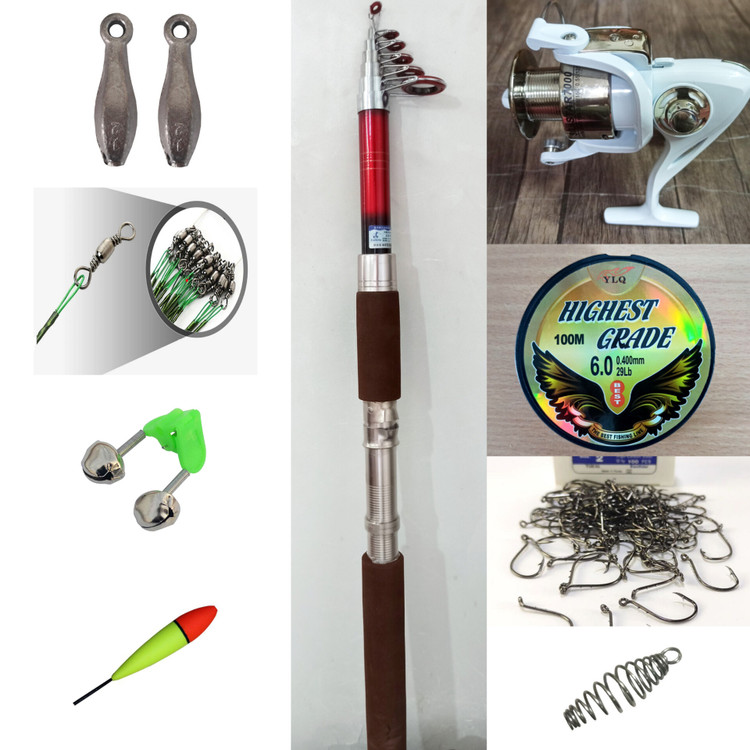 ست لوازم ماهیگیری چوب کپوری Red Pearl اصل سایز 3 متری و چرخ سیل استار 7000 دستگیره تمام فلزی به همراه ست کامل وسایل شامل نخ، قلاب، سرب، هرزگرد، زنگوله، فنرفیدر و شناور.